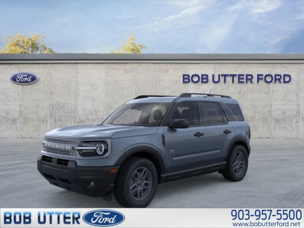 ''Here at Bob Utter Ford, we want you to feel like you are a part of our family. Our Internet Sales Team makes purchasing a vehicle quick and easy! Let us help you with your new Ford today! You can view all of our inventory at www.bobutterford.com. Contact the Internet Sales Dept. at 903-957-5500 or sales@bobutterford.com. All vehicles may be equipped with dealer added accessories. Price of accessories may not be displayed. Please verify added accessories and price with dealer. 2025 Ford Bronco Sport Big Bend 1.5L EcoBoost 4WD Azure Gray Metallic Tri-Coat 25/30 City/Highway MPG