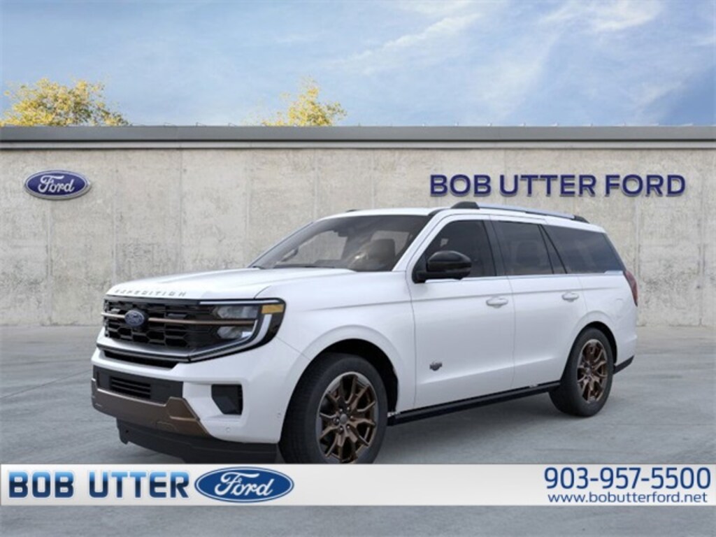 ''Here at Bob Utter Ford, we want you to feel like you are a part of our family. Our Internet Sales Team makes purchasing a vehicle quick and easy! Let us help you with your new Ford today! You can view all of our inventory at www.bobutterford.com. Contact the Internet Sales Dept. at 903-957-5500 or sales@bobutterford.com. All vehicles may be equipped with dealer added accessories. Price of accessories may not be displayed. Please verify added accessories and price with dealer. 2025 Ford Expedition King Ranch EcoBoost 3.5L V6 GTDi DOHC 24V Twin Turbocharged 4WD White Metallic