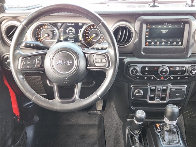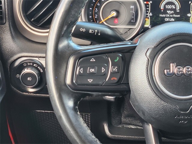 Clean CARFAX. CAR FAX ONE OWNER, BLUETOOTH* *HANDS FREE, REAR BACKUP CAMERA, TOW PACKAGE, 1-Year SiriusXM Radio Service, 7.0" Touchscreen Display, Air Conditioning w/Auto Temperature Control, Air Filtering, Apple CarPlay, Automatic Headlamps, Black 3-Piece Hard Top, Blind Spot & Cross Path Detection, Cluster 7.0" TFT Color Display, Convenience Group, Deep Tint Sunscreen Windows, Freedom Panel Storage Bag, Front 1-Touch Down Power Windows, Google Android Auto, GPS Antenna Input, Injection Molded Black Rear Bumper, Integrated Center Stack Radio, Leather Wrapped Steering Wheel, LED Taillamps, No Soft Top, ParkSense Rear Park Assist System, Power Heated Mirrors, Quick Order Package 24S Sport S, Radio: Uconnect 4 w/7" Display, Rear Window Defroster, Rear Window Wiper/Washer, Remote Keyless Entry, Safety Group, Security Alarm, SiriusXM Satellite Radio, Speed Sensitive Power Locks, Sun Visors w/Illuminated Vanity Mirrors, Technology Group, Universal Garage Door Opener, USB Host Flip, Wheels: 17" x 7.5" Tech Silver Aluminum.